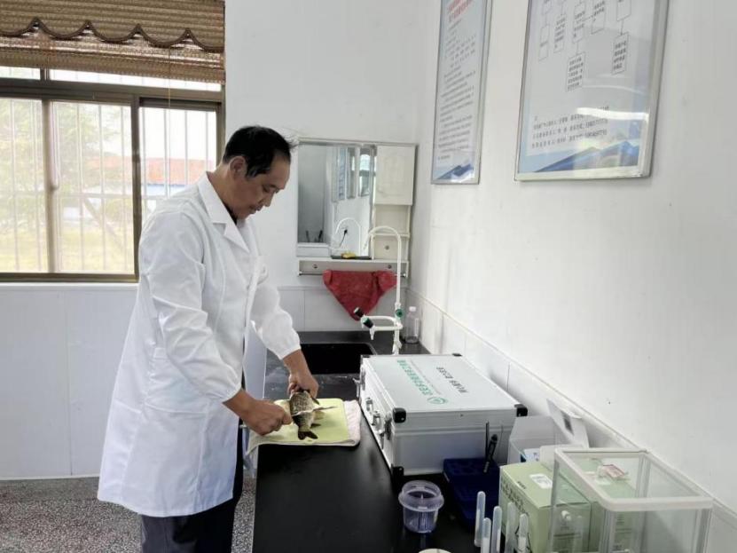 2024年,因工作需要,李興林轉崗為葦魚養殖場水產品檢測員,這是個對專業能力要求高的新崗位。年近花甲的他面對新業務毫不退縮,主動參加檢測技術培訓,白天跟技術骨干學操作,晚上鉆研檢測手冊,憑軍人不服輸的勁頭,快速掌握抽樣、檢測、出具報告全流程技能。無論寒暑,養殖戶有需求他隨叫隨到,背設備上門抽樣,仔細核對數據,精準出具報告。截至目前,他累計完成254批次水產品檢測,合格率100%;所在檢測中心代表鹽城市接受上級調研檢閱,獲各級領導肯定,他用專業與堅守踐行“為民服務”初心。